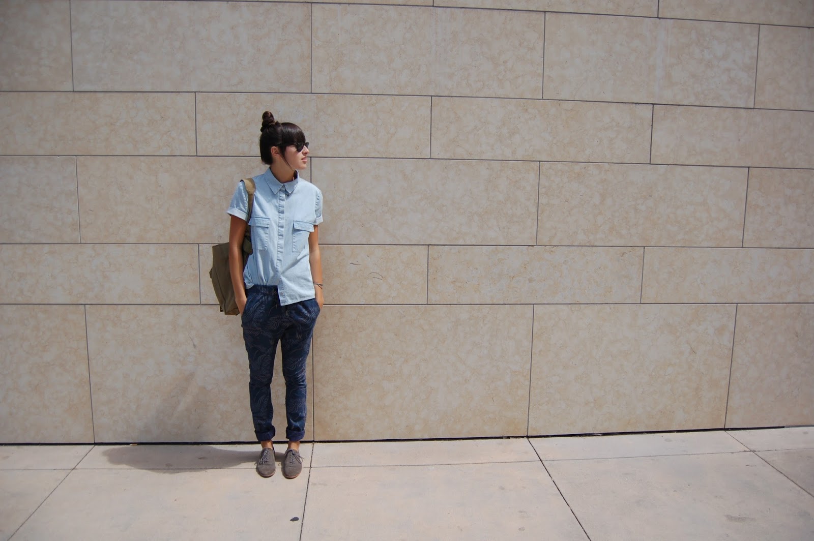 [WEARING: KSUBI BUTTON DOWN; MENS ZANEROBE SURESHOT PANTS; GAP SHOES; MILITARY BAG; RAYBAN SUNGLASSES; H&M RINGS]
